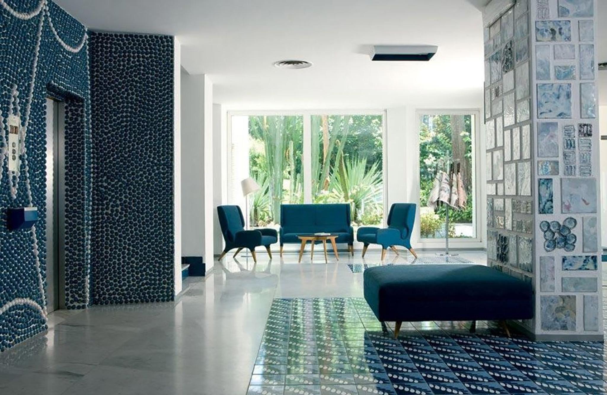 In the 1960s, Gio Ponti had definitely blurred the lines between his different occupations, and his career culminated in the architectural and interior design of the first design hotels in Italy: first, as already mentioned, with the Hotel Parco dei Principi in Sorrento and then with the Hotel Parco dei Principi in Rome. He took care of designing uniquely modern interiors in collaboration with some of the most respected designers of the time like Fausto Melotti and Ico Parisi. Exact replicas of the majolica designed by Gio Ponti in 1960 for the Hotel Parco dei Principi in Sorrento are still in production today, serving as beautiful tiles.