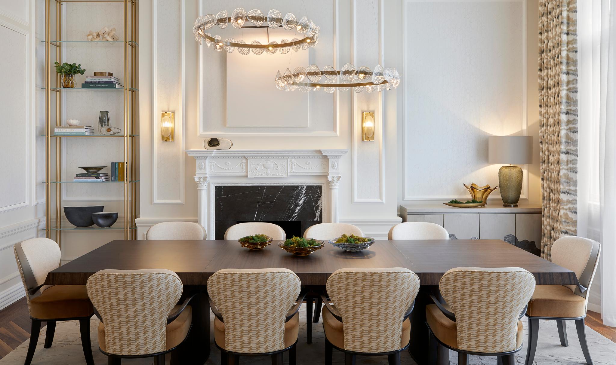 The interior renovation project of the apartment at Harcourt House involved the complete transformation of a 2000 square foot apartment. The project included a partial refurbishment of the apartment, and the design incorporated high-end finishes and materials, such as hand painted silk wallpapers, custom artisan furniture and bespoke lighting. The color scheme was carefully chosen to create a warm and inviting atmosphere, while highlighting the architectural features of the space. The final result is a luxurious and stylish space that reflects the clients’ personal style and taste, while also incorporating the unique charm of the Harcourt House building.